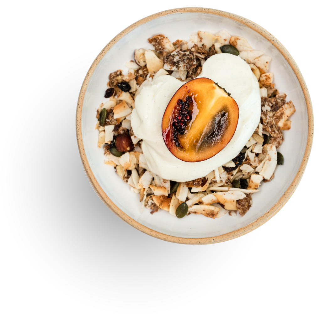 We make the streusel pieces in-house, blending together a combination of oats, chai, ghee, honey, and a pinch of salt. Each bite of streusel offers a subtly soft-baked texture to contrast our delicately crunchy granola. Like pie crumble..yum!
